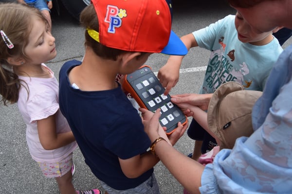 In ihrem Geschick konnten sich die Kinder beim Bedienen des Flexilight Lichtmastes sowie beim "Abschießen" der Verkehrsleitkegel mittels dem Hochdruck Strahlrohr messen.