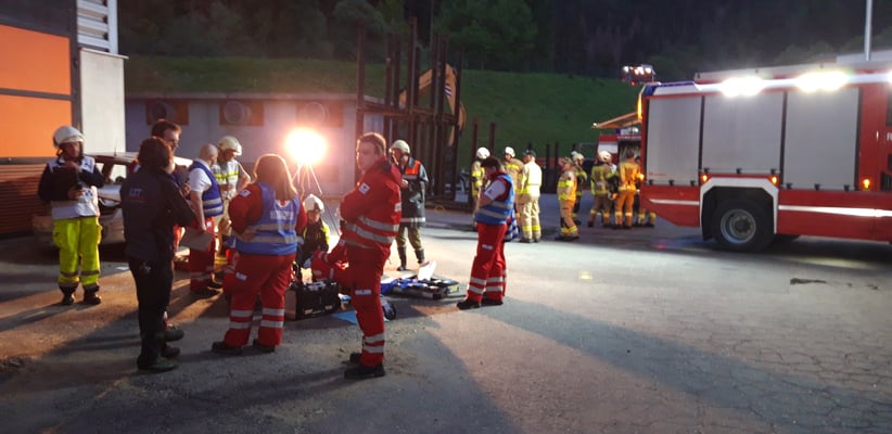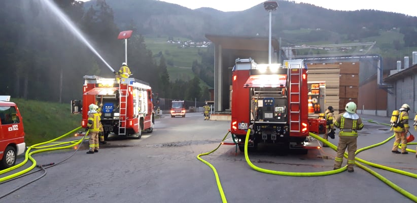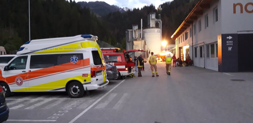 VU mit eingeklemmter Person, Brand übergreifend auf das Produktionsgebäude und mehrere vermisste Personen waren die Eckpunkte der Einsatzmeldung.