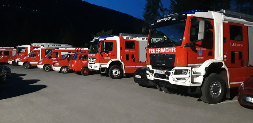 FF Kartitsch mit 24 Mann und TLFA, KLFA, MTFA