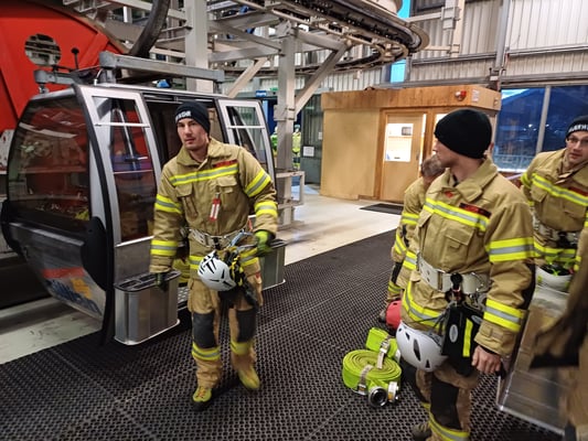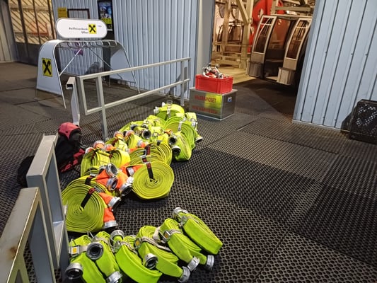 Um 05:30 Uhr wurde die Mannschaft und das Schlauchmaterial per EU Bahn Sillian zur Mittelstation befördert, dann anschließend mit Schiqaud und Pistengerät weiter zum Brandobjekt.