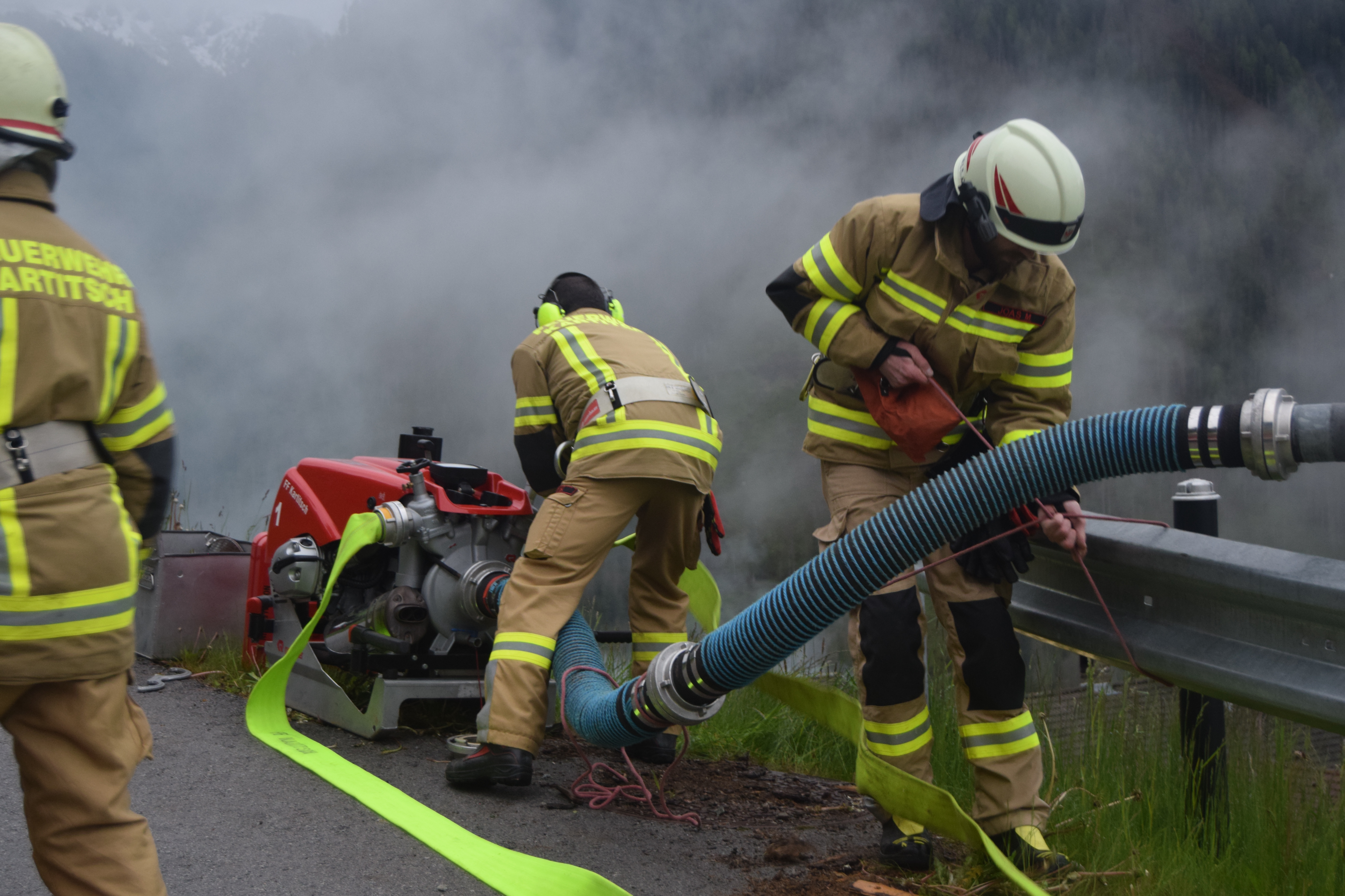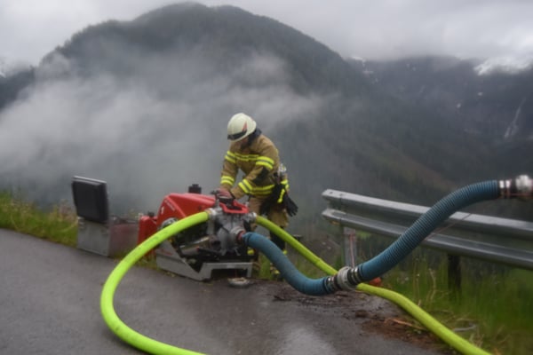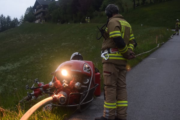 Mit insgesamt 5 Pumpen wurde in weiterer Folge eine über 1 km lange zusätzliche Löschleitung aufgebaut.