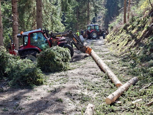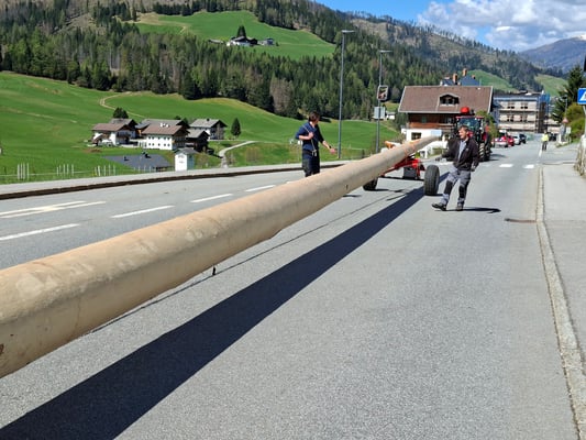 Das bewährte Maibaumteam konnte nach einigen Hindernissen den Baum wieder in gewohnter Manier zum Dorfplatz bringen.