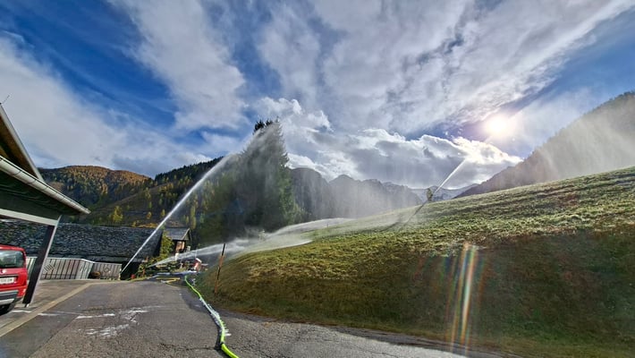 Inzwischen wurden weitere Strahlrohre vorbereitet und in Stellung gebracht.
