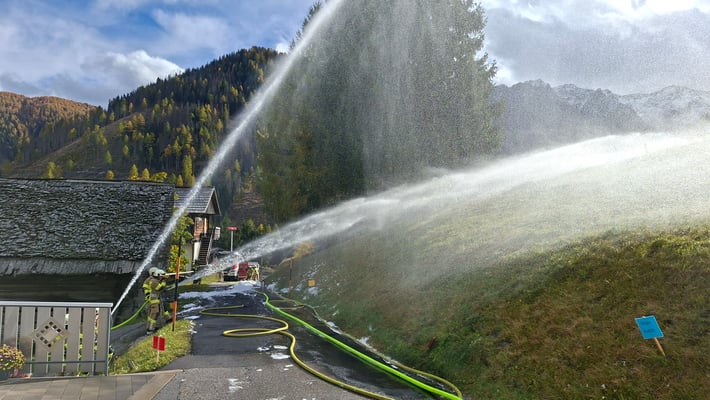 Nachher wurde ein Löschangriff auf die Fahrzeuge gestartet.