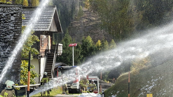 Inzwischen wurden weitere Strahlrohre vorbereitet und in Stellung gebracht.