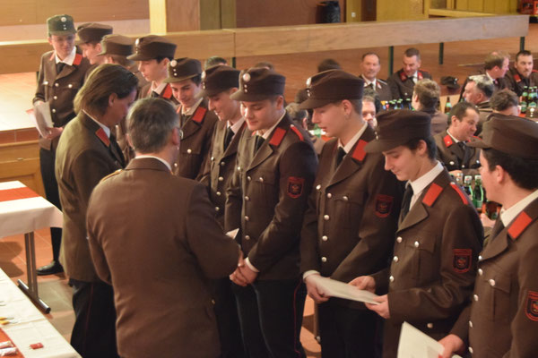 Es folgten die Angelobung von 10 neuen Mitglieder und die Beförderung zum Feuerwehrmann der Selben.
