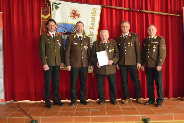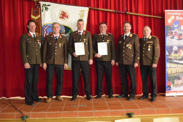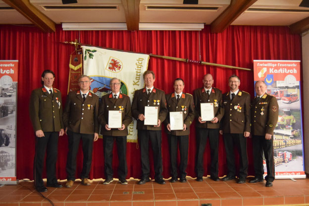v.l. KDT Stv. HERRNEGGER Hans, BGM AUSSERLECHNER Josef, Schraffl Markus, Bodner Josef jun., KDT RINNER Hannes, BFI BRUNNER Franz